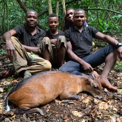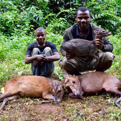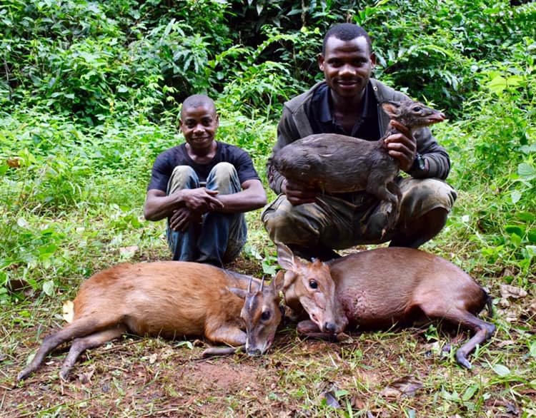 Para la caza de los diferentes Duikers, se realiza en esperas en el interior de la selva, donde los pigmeos realizan diferentes sonidos para reclamarles.