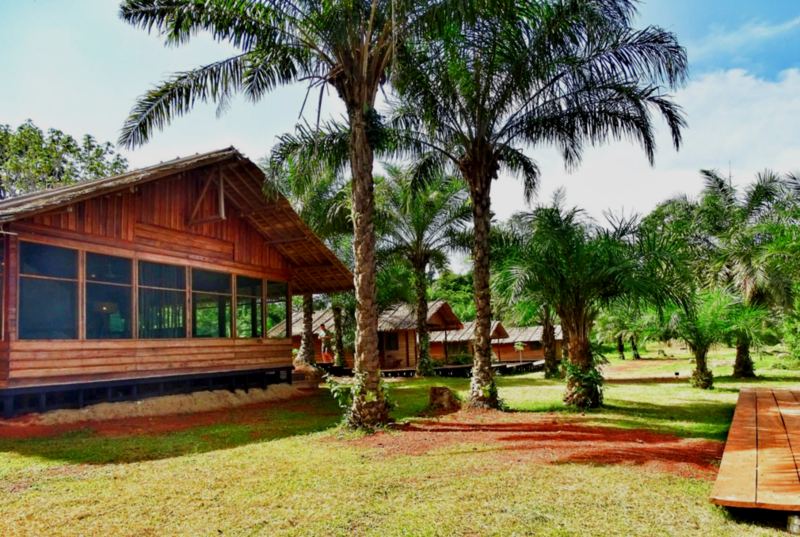 El campamento está situado en plena zona selvática y a la orilla del rio, teniendo un aspecto totalmente paradisiaco.